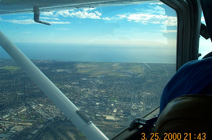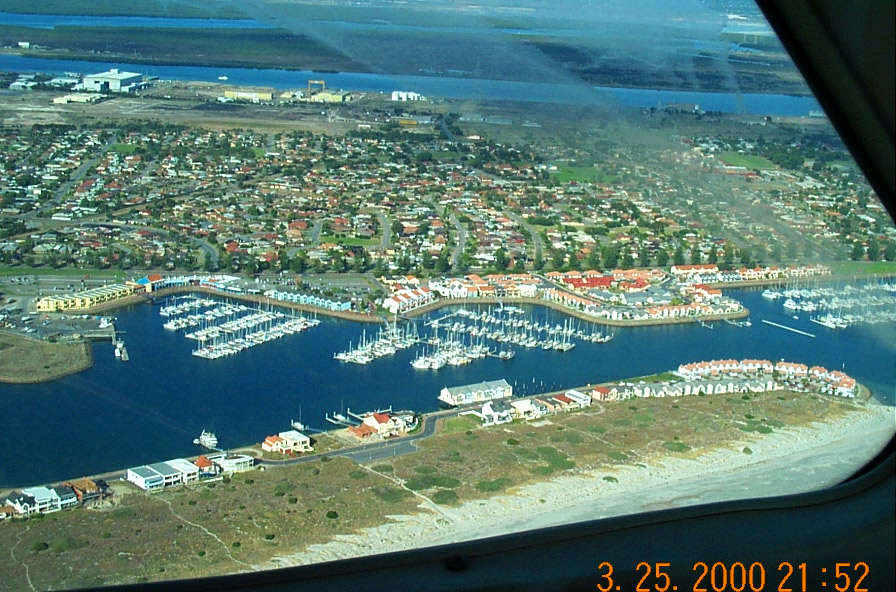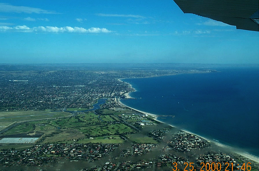In this photo we are over the South shore looking North at the city of Adelaide. With the Airport in the foreground.